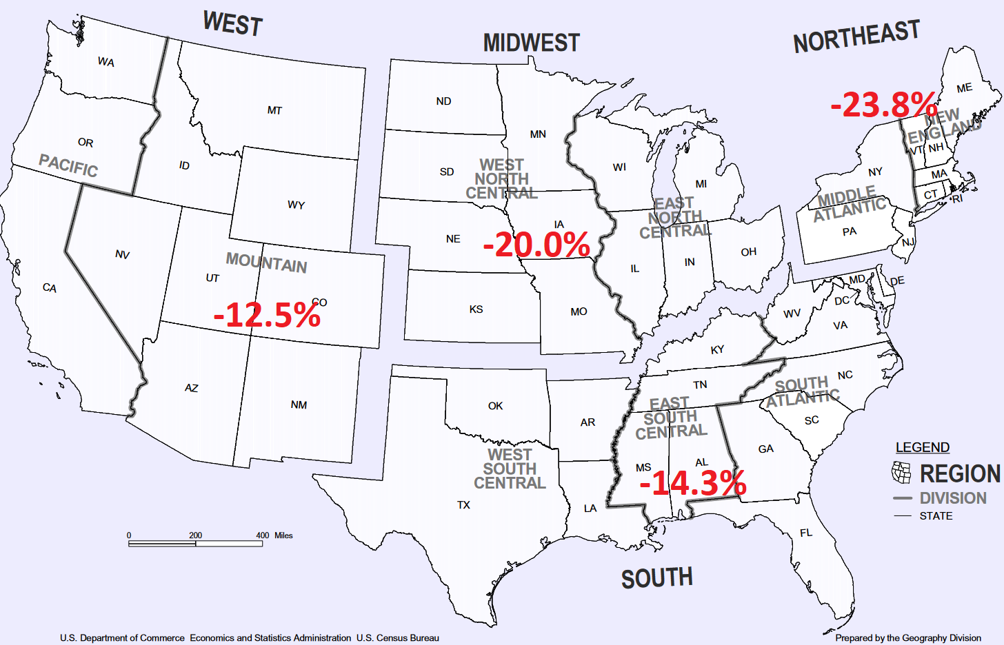 By region, year-over-year sales plunged in all regions: