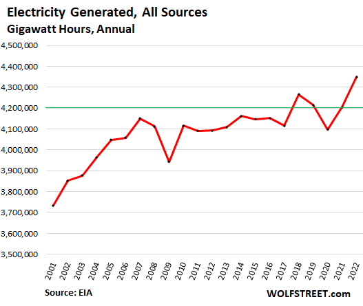 Amount of electricity generated and sold in the US. See the impact of EVs finally?