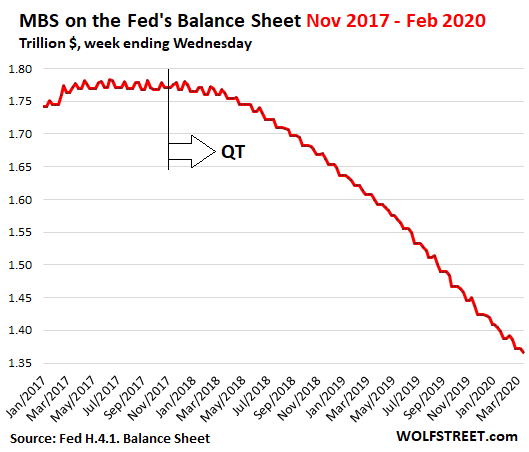 Treasury notes and bonds “roll off” the balance sheet mid-month or at the end of the month when they mature and the Fed gets paid face value for them. The roll-off is capped at $60 billion per month, and about that much has been rolling off, minus the inflation protection the Fed earns on Treasury Inflation Protected Securities (TIPS) which is added to the principal of the TIPS.