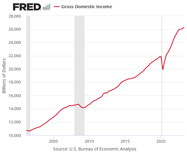 On a year-over-year basis, which is what you’re talking about, GDI was much stronger last year in Q1, Q2, and Q3, than GDP, and none of the recession-mongers last year said anything about it, and there were lots of recession-mongers last year, including the Biden-changed-the-definition yokels, and now that it’s weaker than GDP, it’s suddenly a big deal? Come one.