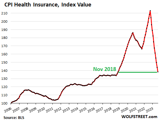 The collapse of the health insurance CPI.