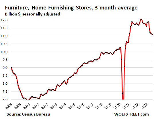 Furniture and home furnishing stores (1.6% of total retail). Another pandemic bubble goes kaput.