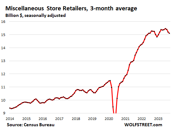 Miscellaneous store retailers (2.2% of total retail): Specialty stores, from art-supply stores to cannabis stores.