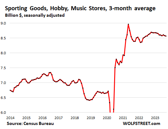 Sporting goods, hobby, book and music stores (1.2% of total retail):
