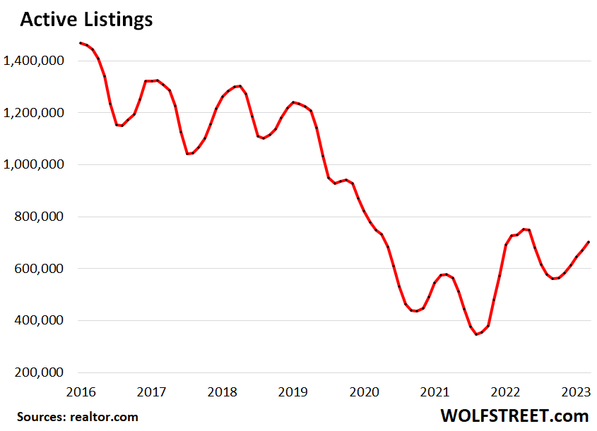 Obviously, Realtors and the NAR could boost sales volume by pressuring their clients to lower asking prices by a big chunk to bring them in line with 8% mortgage rates, and these lower prices would bring out the buyers, and that would help getting the market out of the deep-freeze, but no. It’s much better to whine to the Fed about handing out more heroin.