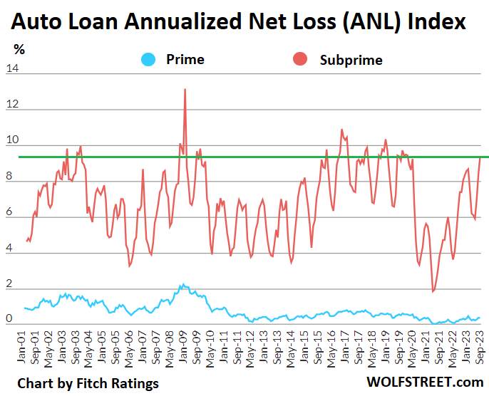 Its subprime-rated Annualized Loss Index rose to 9.23%, which was a tad below the same months in the years before the pandemic (in September 2019, it was 9.27%; in September 2018, it was 9.44%).