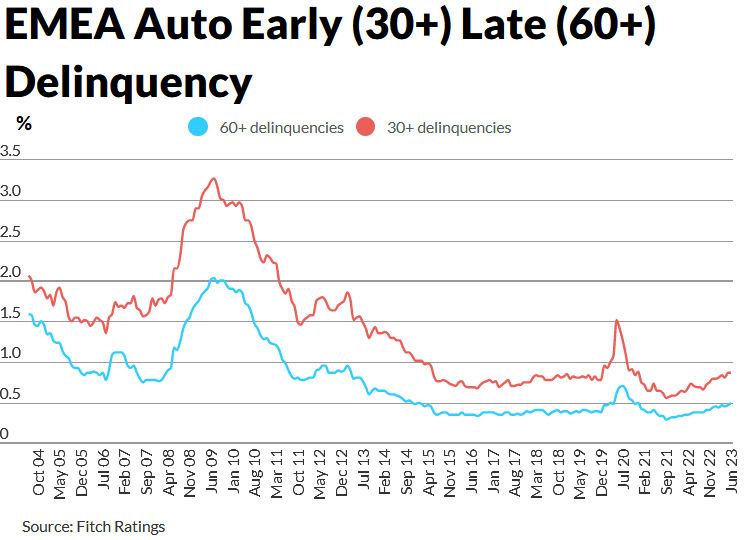 Then there’s the issue of Fitch combining data from Europe,Africa and the Middle East which makes it very hard to determine the exact delinquencyrates in Europe.
