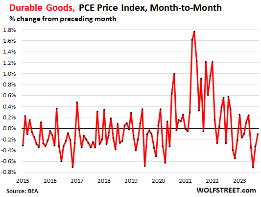 But the durable-goods PCE price index changes are still negative, driven by motor vehicles which dominate durable goods: