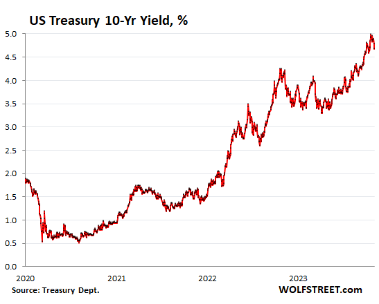Incidentally, the Treasury Department today came out with a list of 12 reasons why longer-term yields have shot up, and QT was one of them. Wall Street loathes QT, and they’re throwing all kinds of things at the Fed to get it to back off, including during the press conference. ZZZZZAPPP.