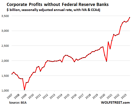 It’s not a surprise that our Drunken Sailors, as we’ve lovingly and facetiously called them all year, keep splurging on goods and services, despite endless expectations that they would run into whatever wall of the day. A record number are working, and they have gotten big pay raises, and they’re making record amounts of money, and retirees have received an 8.7% Social Security cost-of-living-adjustment for 2023, and yield investors have been receiving around 5% or more on their trillions of dollars in money market funds, CDs, high-yield savings accounts, and T-bills, and mom-and-pop landlords have pocketed nice rent increases this year, and it all adds up.