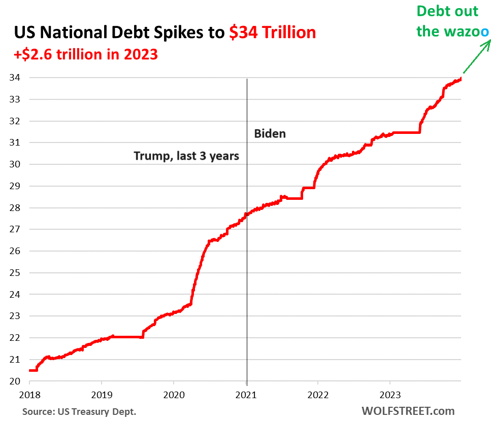 And this is the size of the US debt: $34.0 trillion at the end of 2023. And we marked this day here by tearing out our hair.