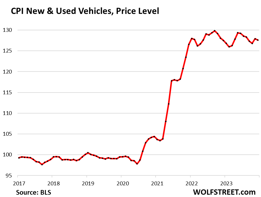 Combined, the new-and-used-vehicle CPI spiked by 31% from January 2020 through September 2022, and has since then dipped about 2%.