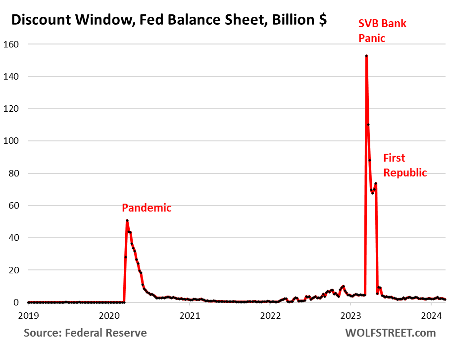 Discount Window: $1.8 billion. Roughly in this range since July 2023, and down from $153 billion during the bank panic in March 2023.