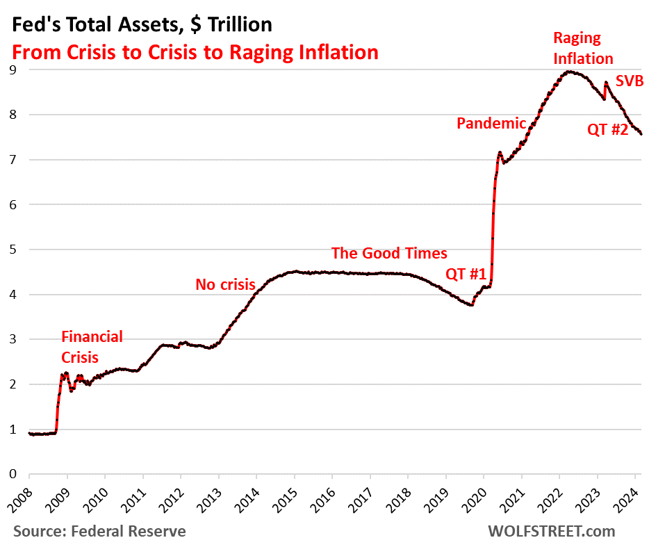 Since the end of QE in April 2022, the Fed has shed $1.43 trillion, as quantitative tightening continues on track.