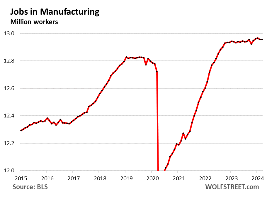 It was the kind of jobs report we’d expect from an economy that is plugging along just fine, at growth rates that are above the long-run average, powered by drunken sailors all around: By consumers outspending inflation with gusto, especially on services, by the government spending trillions it borrows hand-over-fist, and by businesses that are raking in big-fat inflation-fueled profits.