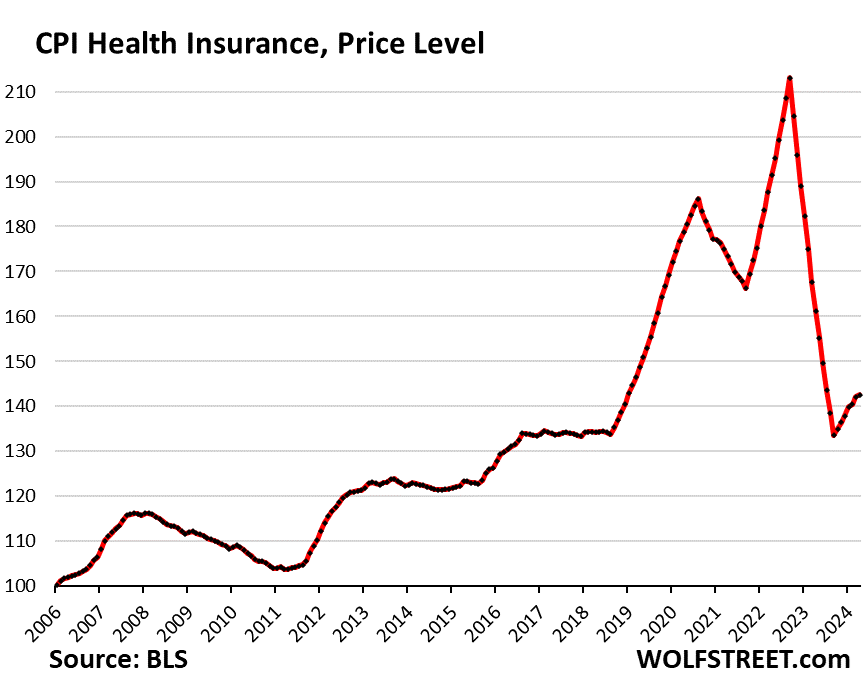 The health insurance CPI is “Chickenshit,” according to Wolf Richter. So based on that fact, I no longer waste my time covering it, after having spent well over a year dealing with it. The BLS needs to come up with a new method, and when it does, I’ll cover that transition and its mechanics and reasons.