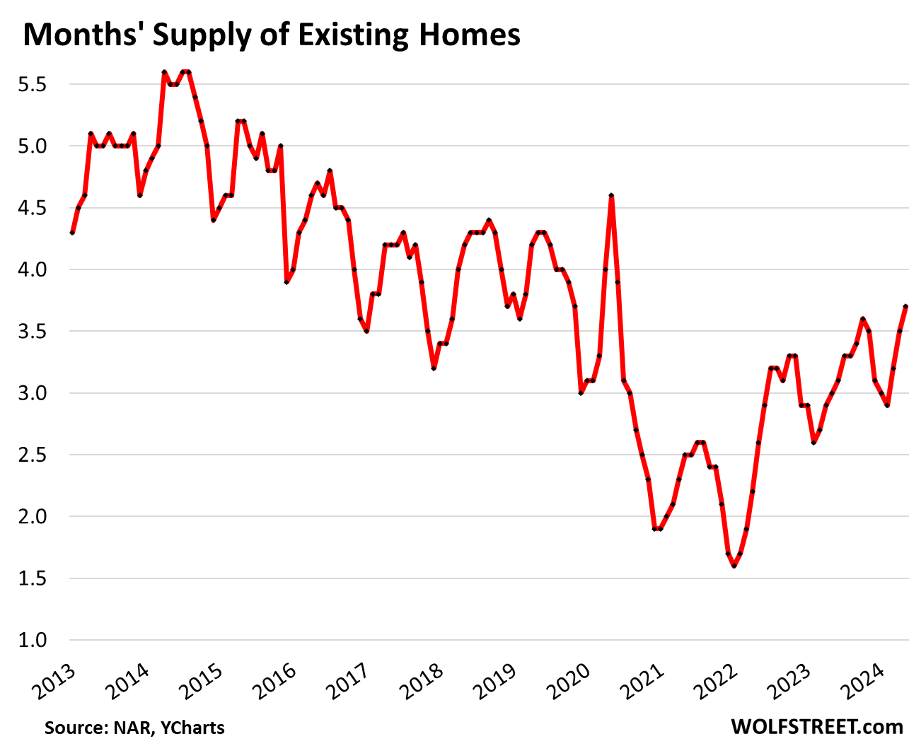 And this sustained plunge in demand is occurring even as supply in May jumped to 3.7 months, the highest since June 2020, and as inventory for sale jumped by 18.5% year-over-year, to 1.28 million homes, according to NAR last week: