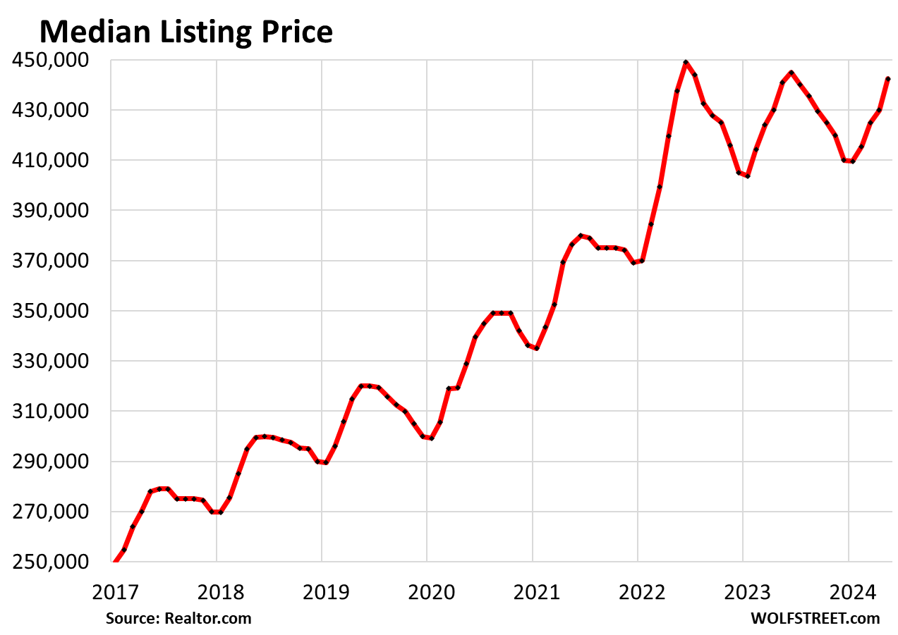 Realtor.com has “Median Listing Price.” But listing prices don’t turn into reality necessarily, as price cuts have reached multiyear highs as percent of active listings.