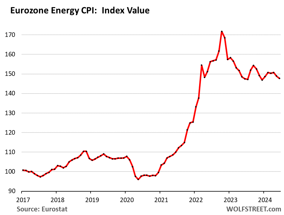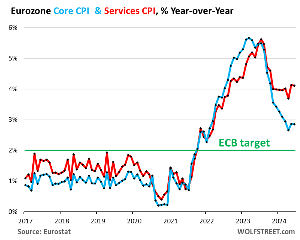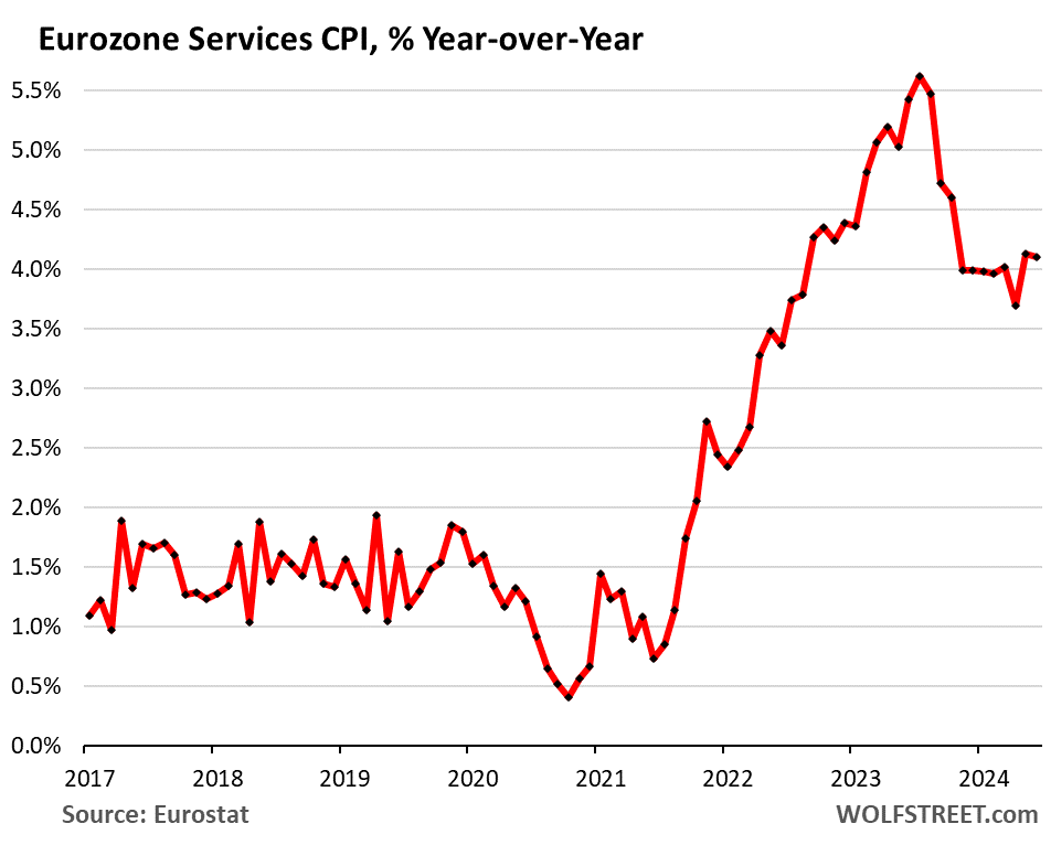 Wages are costs to service providers, and with many services, wages are the biggest cost factor, and so service providers hike their prices to cover the higher costs of labor, which is why services inflation rises when wages rise — that’s the point Lagarde was making (and others have made the same point about the US services inflation).
