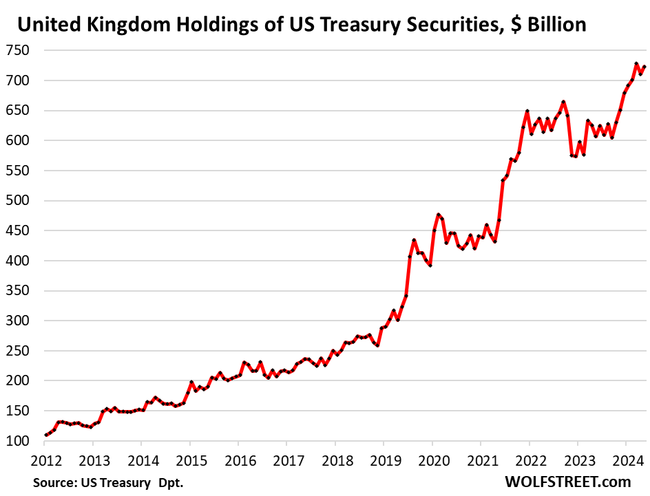 United Kingdom: $723 billion, +19.3% YoY. Included in the Top Six Financial Centers. The City of London is one of the top financial centers in the world, and so a portion of those securities could be held for US clients.