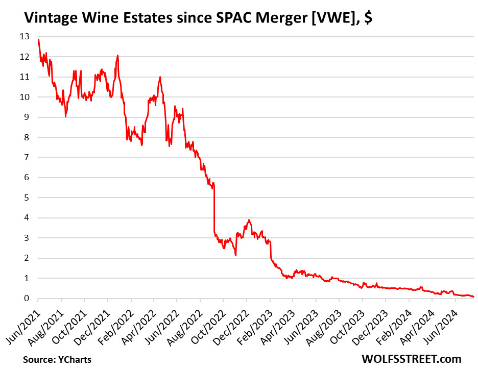 Vintage Wine Estates along with its subsidiaries – once a PE-firm-backed roll-up with about 34 brands and estates that had gone public via merger with a SPAC in June 2021 at a $690 million valuation, and a market capitalization on its third day of trading of $776 million – has now filed for Chapter 11 bankruptcy. It took three years and one month from the SPAC merger.
