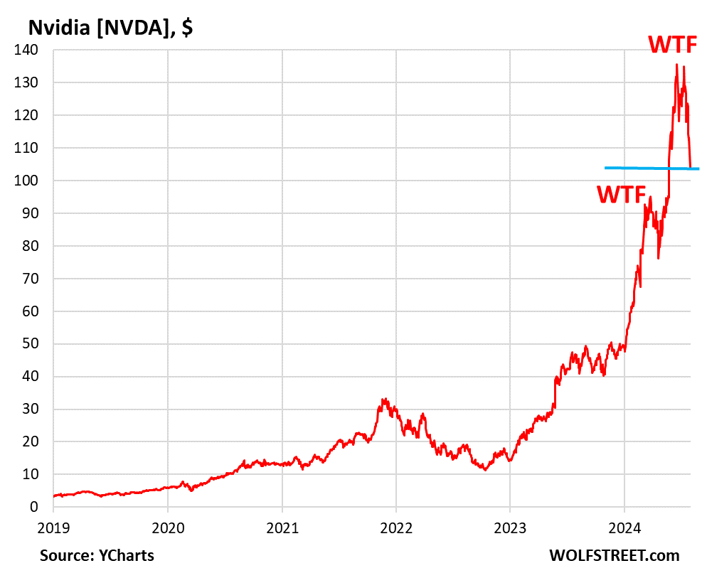 But as the Fed has done earlier this year when the market went way overboard with its rate cut mania, it might try to walk back those expectations. The statement might not say anything that would confirm a rate cut in September. And Powell might mention how his “confidence” about inflation heading to 2% was rising but needs a few more good data points to rise enough to make a decision to cut, etc., etc., thereby throwing doubts on a September rate cut. And that could be interesting.