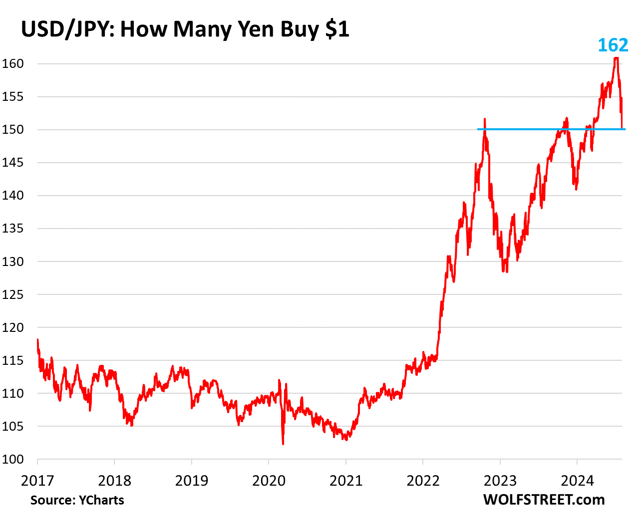 So the BOJ is very late and very slow in raising its policy rates, and the yen has plunged over the past two years as a result of it. It’s the plunge in the yen – and its effect on prices of imported goods, including energy commodities – that has forced the BOJ to get off its crazed interest rate and QE policies.