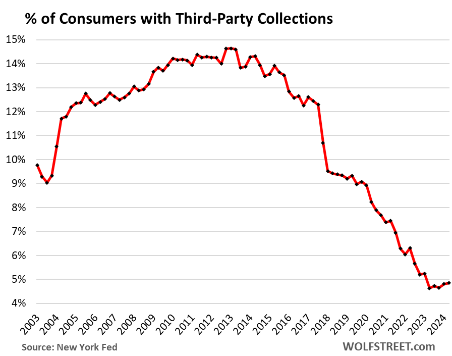 The percentage of consumers with third-party collections inched up to 4.85% in Q2 from 4.81% in Q1. This chart is almost funny: