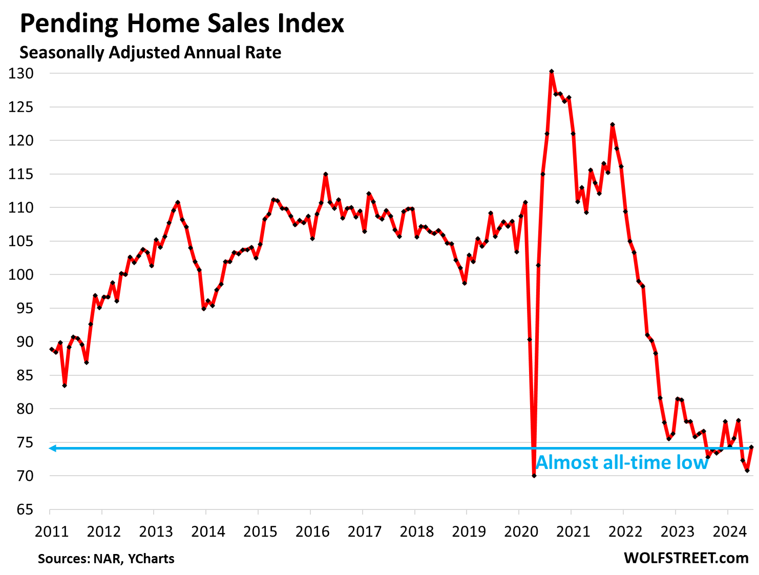Very recently, there has been a jump in new pending sales. The lower rates have really juiced the housing market. This will not show up in data for a little while … perhaps a month or two.