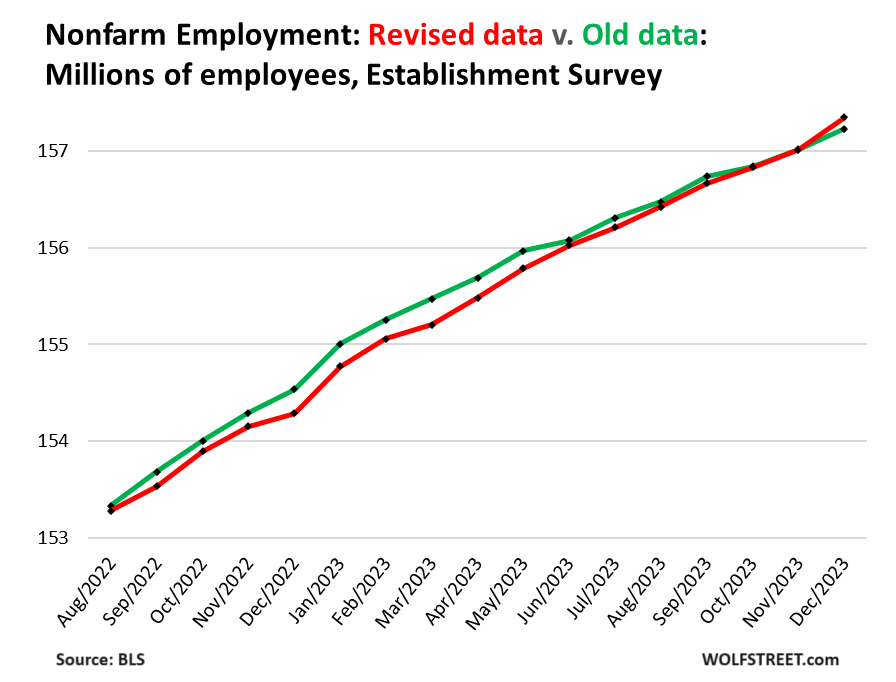 The Establishment survey data in the monthly jobs report will not be updated with these preliminary revisions. Instead, it will be updated with the final revisions that include monthly details, to be released in February. We will cover that as we have in prior years with a chart with two lines, one color for the new revised data and another color for the old data. Final revisions have differed significantly from preliminary estimates in the past.