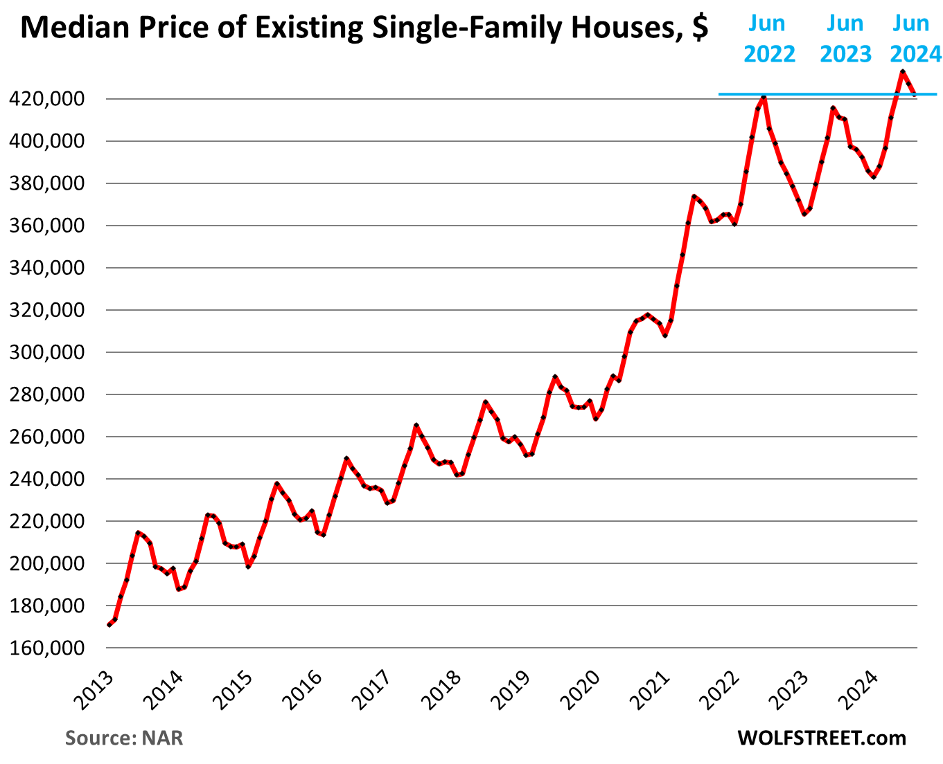 If these charts look funny, in an absurd sort of way, the way housing market charts should never ever look, it’s because this housing market has been whipped into crazy distortions by the Fed’s monetary policies that then U-turned in 2022, including nearly $2 trillion in QT by now.