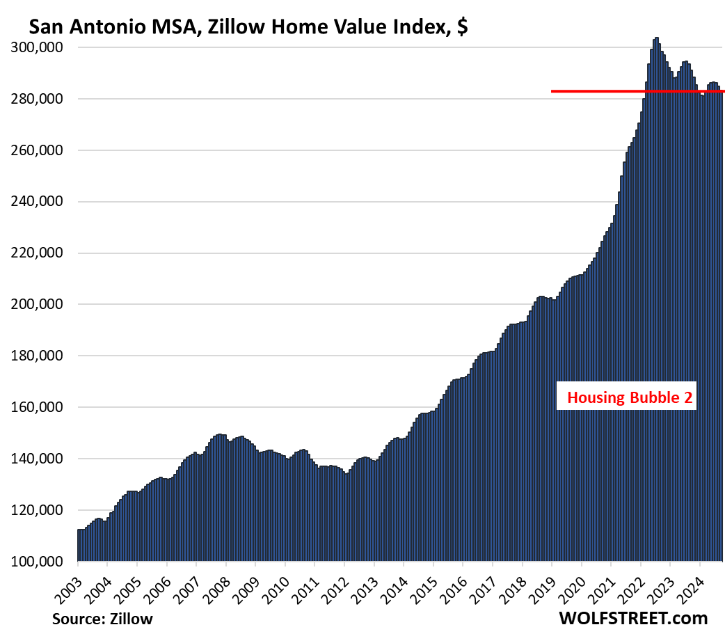 San Antonio metro: -2.7% year-over-year; -6.8% from the July 2022 peak: