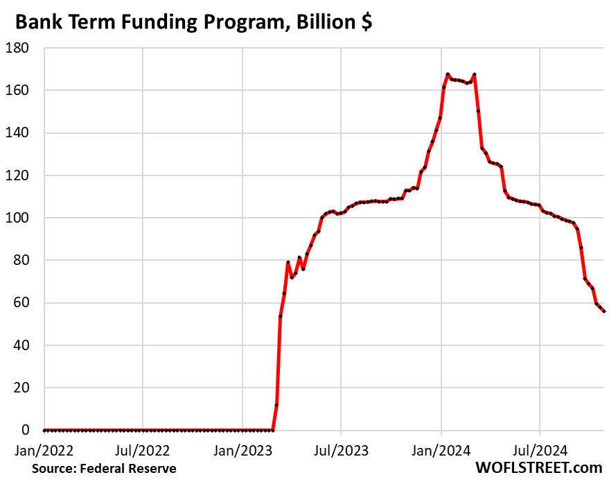 Bank Term Funding Program (BTFP): -$15 billion in October, to $56 billion, the lowest since its second week of existence in March 2023.