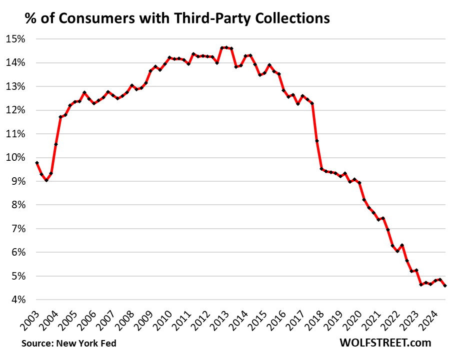 The percentage of consumers with third-party collections dipped to 4.60%, a new record low in the data:
