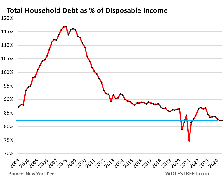 The ratio of 82% in Q3 was historically low, bested by only a few quarters during the free-money-stimulus era that had briefly inflated disposable income beyond recognition.