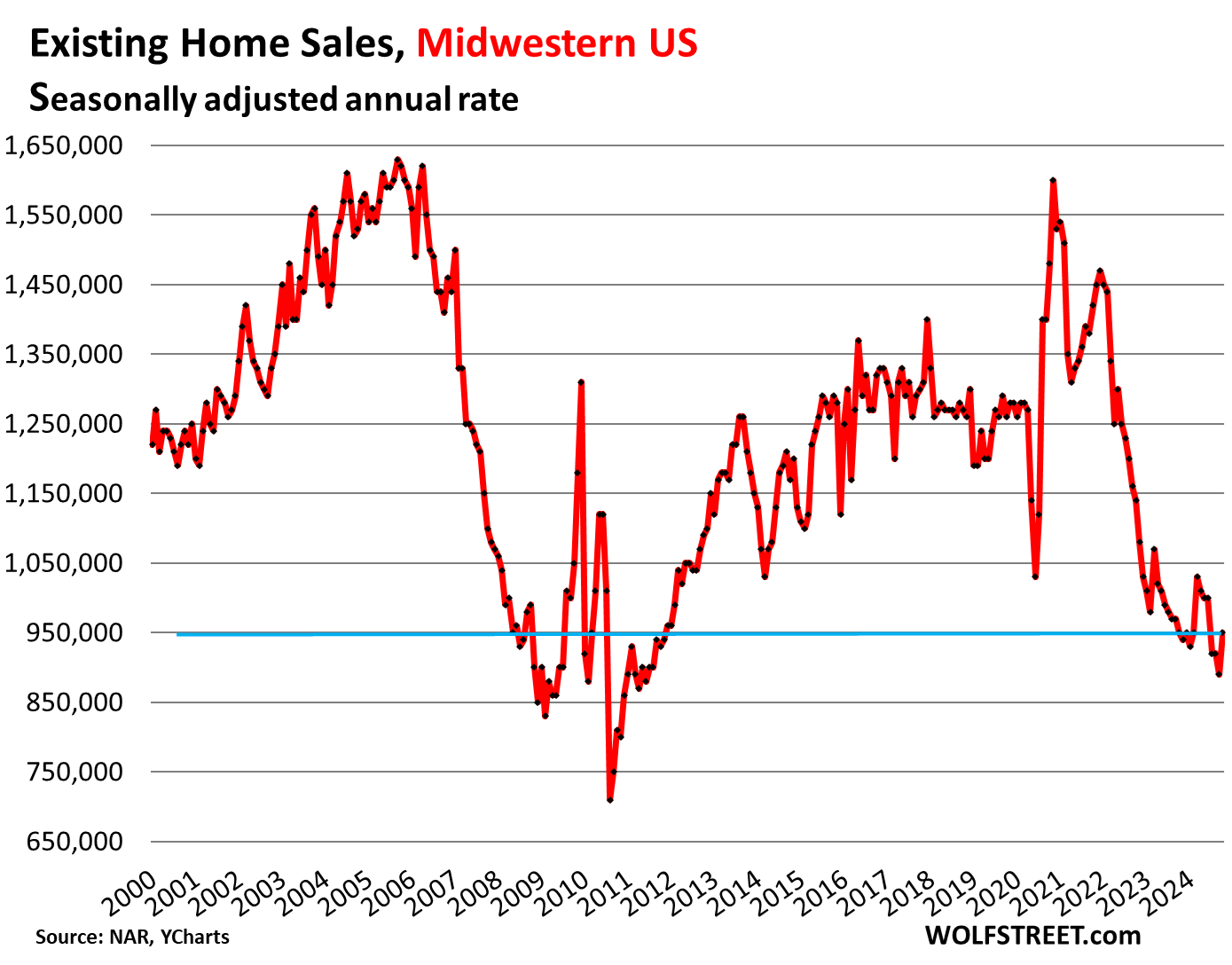 Midwestern US: The seasonally adjusted annual rate of sales rose to 950,000 homes.