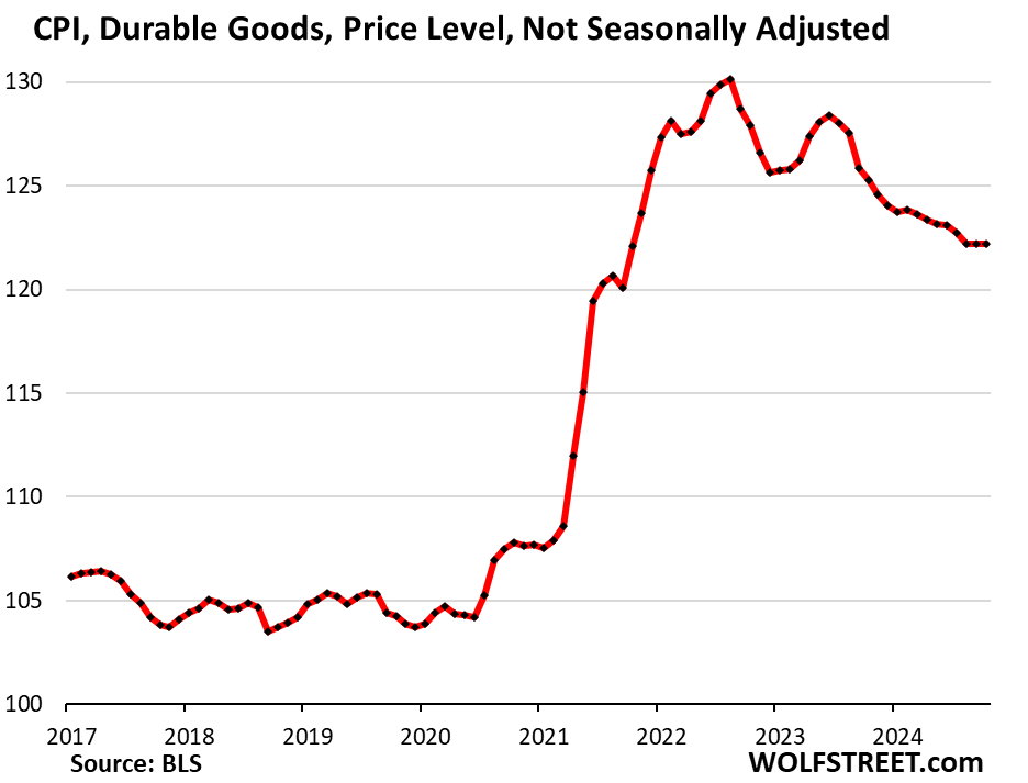 Yes, they do that. And on a large scale. They’re cutting prices just fine. See automakers in 2023 and 2024, when they used incentives to cut prices. Tesla cut prices outright. Now legacy automakers are cutting MSRPs. The MSRP of the 2025 model year Ford F-150 for example got cut by $2,025 from the 2024 MSRP. Walmart cut prices on many thousands of items in 2024. Prices of goods have gotten slashed in lots of places, from laptops to washing machines. As a whole, the durable goods CPI has dropped in a historic manner for the past two years. No one is going to raise prices of these goods because of tariffs, or they’ll be dead in the water.