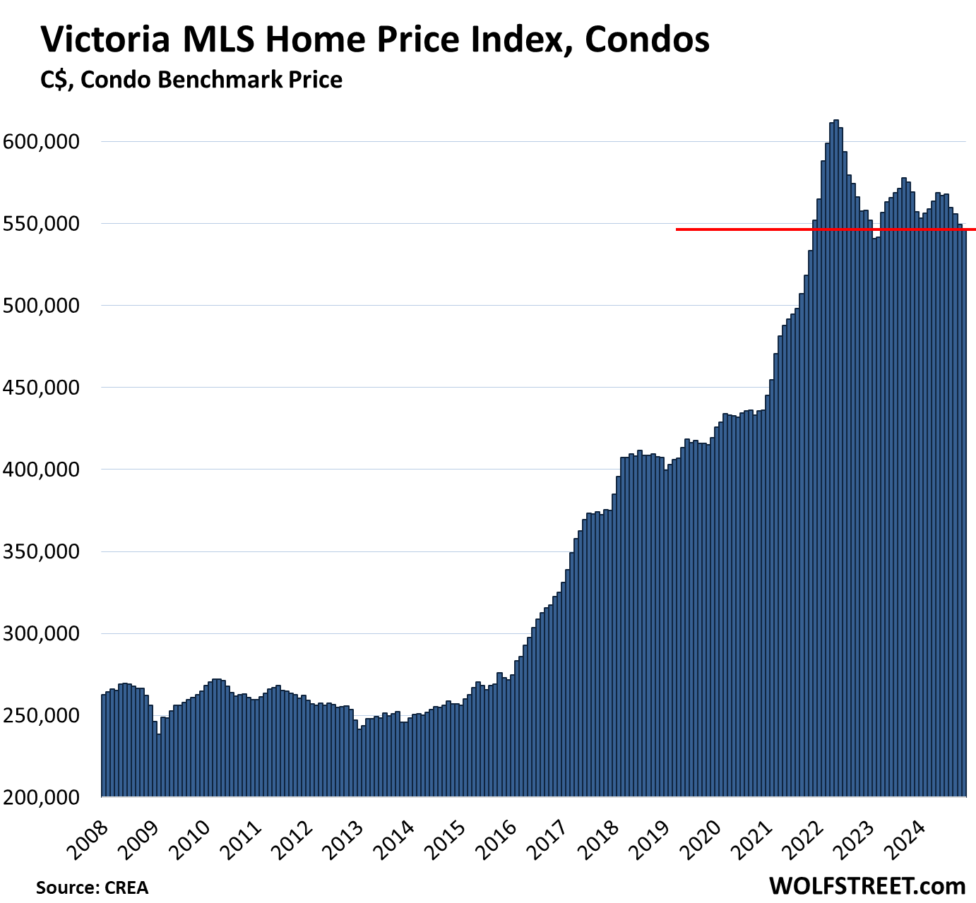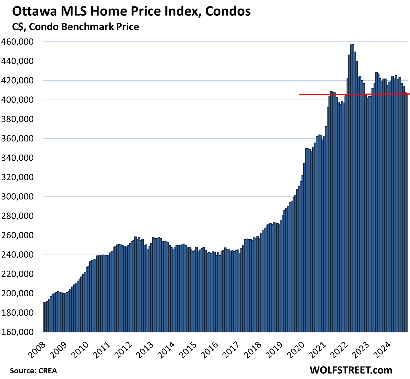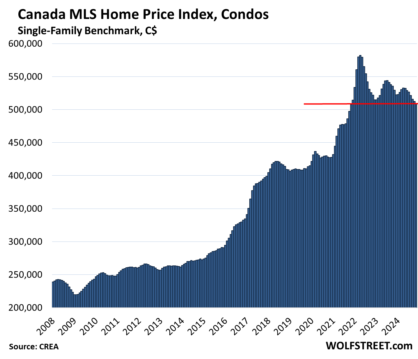 The Most Splendid Housing Bubbles in Canada, Nov. 2024: Condo Prices Drop to New 3-Year Low, Single-Family Prices Stable at -17% from Peak in March 2022