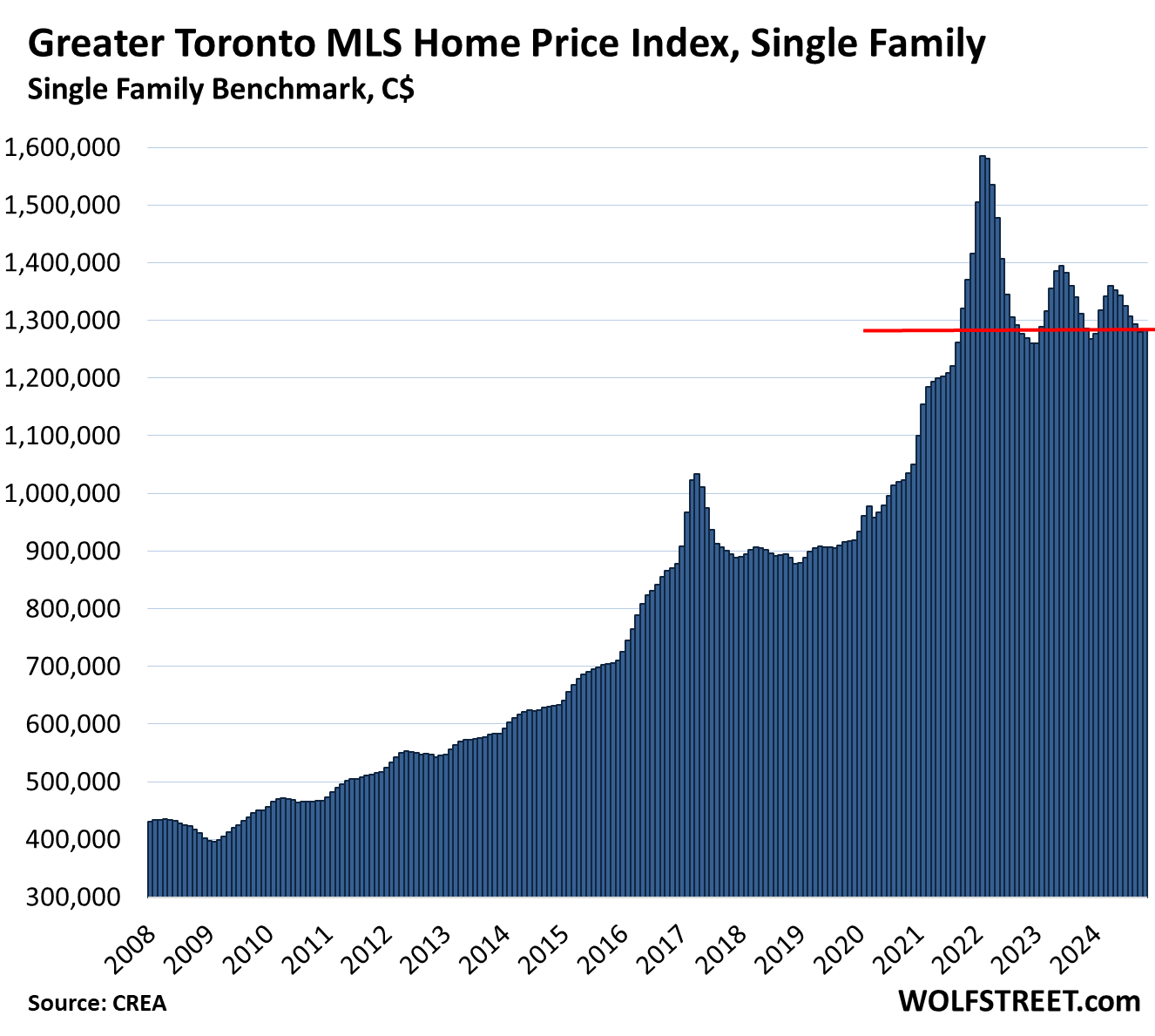 Greater Toronto Area, single-family MLS Home Price Benchmark Index: