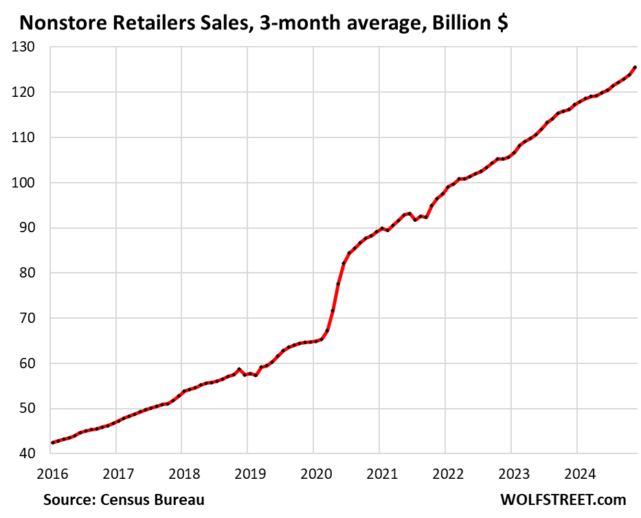 November’s sales increase and the three-month average sales increase annualized amount to +8.6%! And it wasn’t just November, or the past three months. The spending spree started in July.