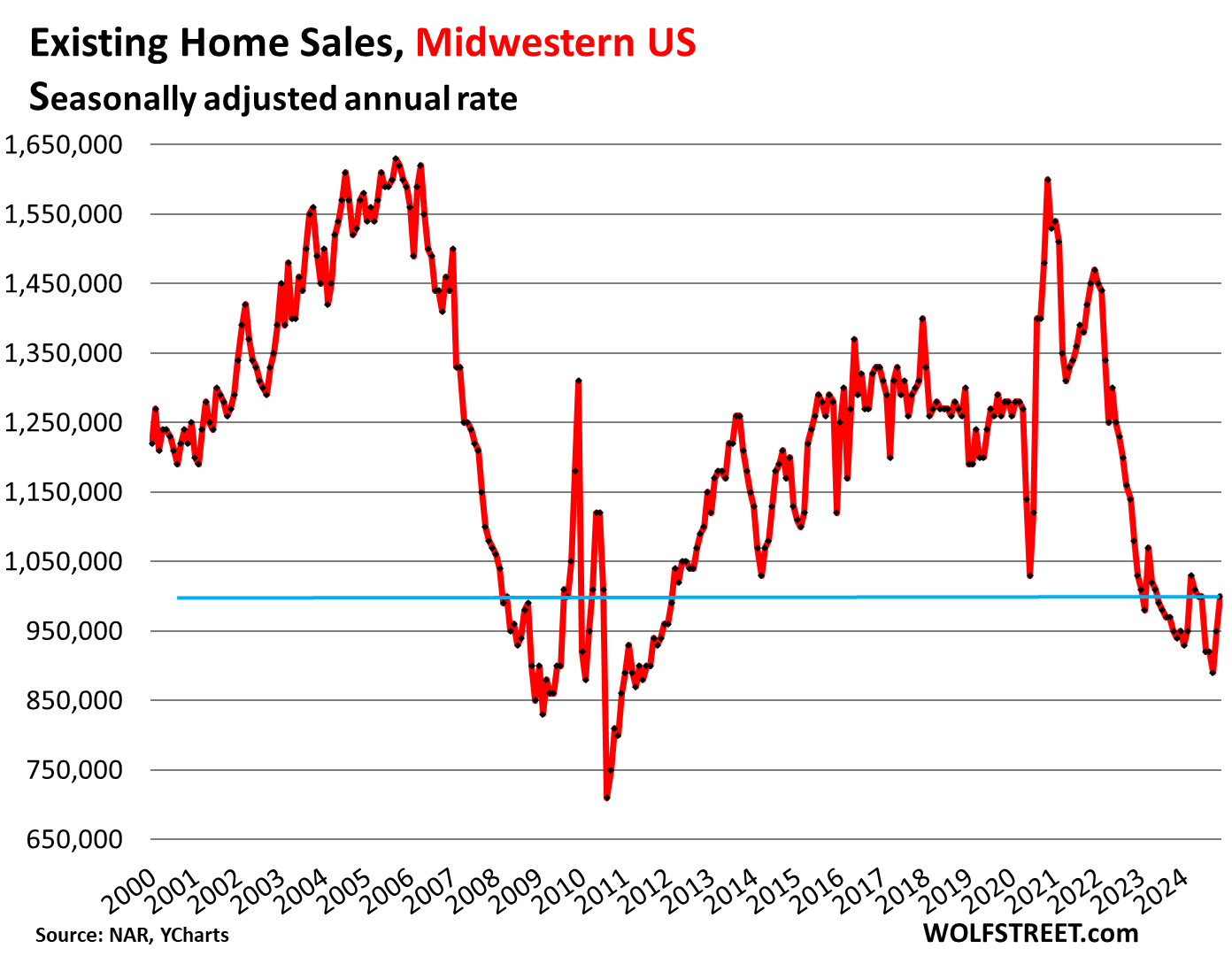 Midwestern US: The seasonally adjusted annual rate of sales rose to 1,000,000 homes.