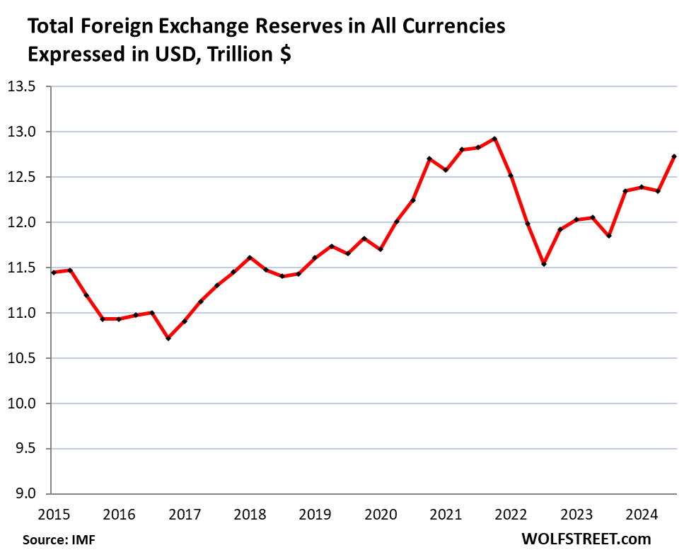 Central banks holdings of foreign exchange reserves denominated in all currencies, including in USD, rose to $12.7 trillion.
