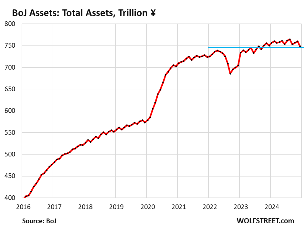 Total assets: -¥17 trillion (-$108 billion) from the peak, to ¥748 trillion ($4.73 trillion), the lowest since September 2023.