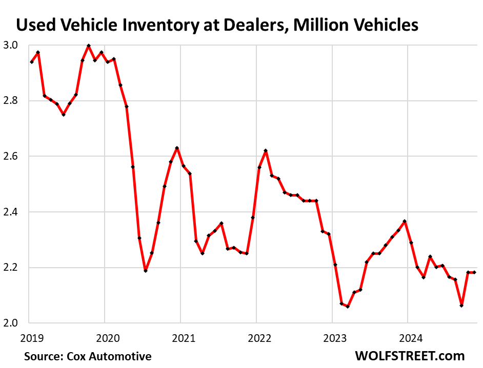 Retail inventories are tight amid supply issues and solid demand. At the start of December, inventory at used-vehicle dealers remained at about 2.18 million units, roughly unchanged from the prior month, and down by about 26% from the same period in 2019, according to data from Cox Automotive.