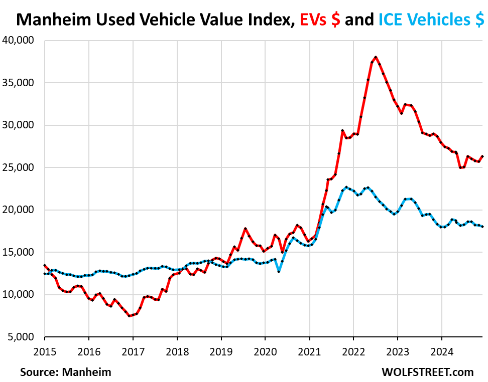 ALL used car prices are still way too high, and particularly used EVs, and they should fall a lot further, but it doesn’t look like they will.