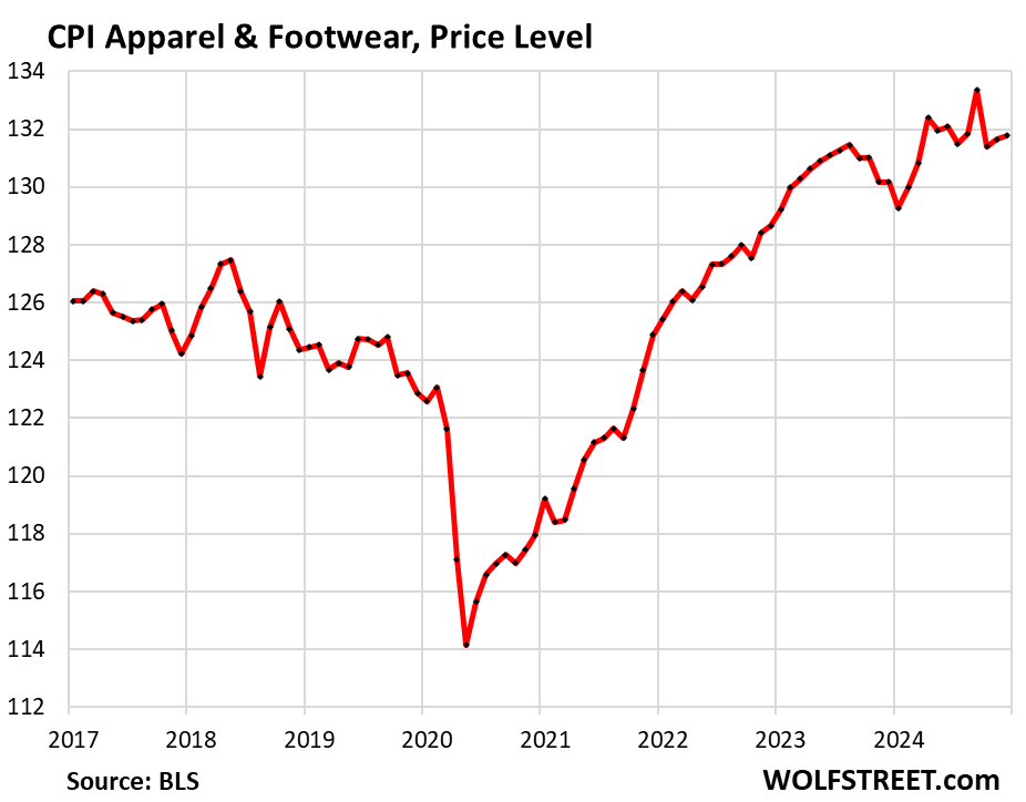 The CPI for apparel and footwear inched up by 0.1% in December from November and by 1.2% year-over-year.