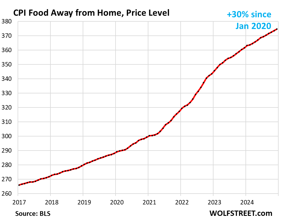 Food away from Home CPI rose by 3.6% annualized (+0.30% not annualized) in December from November, and by 3.6% year-over-year, same as in the prior month, and the smallest increase since August 2020.