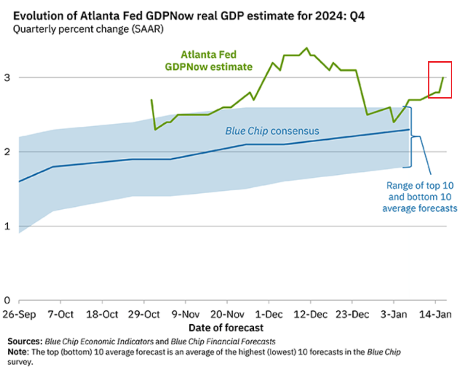 The Atlanta Fed’s GDPNow “nowcast” for Q4 “real” GDP (inflation adjusted) jumped to a growth rate of 3.0% today, upon inclusion of the retail sales data.