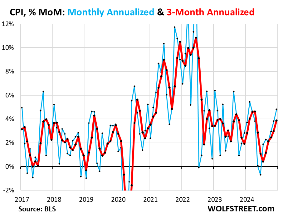 The three-month CPI, which irons out some of the month-to-month squiggles, jumped by 3.9% annualized, the sharpest increase since April, and the fifth month-to-month acceleration in a row.
