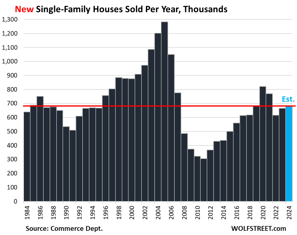 Bring on the Supply: Single-Family Construction Starts in 2024 Rose to 2nd Highest in 17 Years amid Budding Glut. Multifamily Starts Plunge from Boom amid Oversupply & CRE Depression